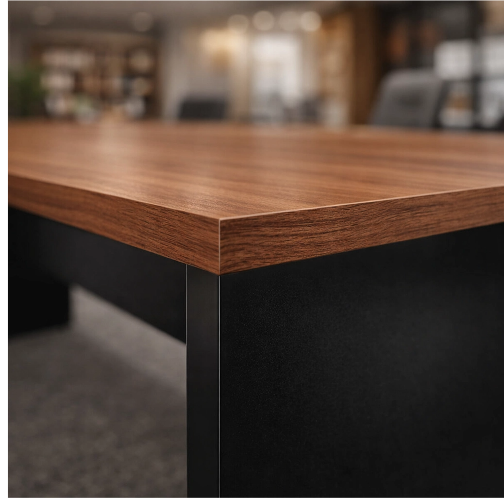 Seu tampo amplo de 2 metros de comprimento oferece espaço suficiente para acomodar várias pessoas com conforto, facilitando reuniões de equipe, apresentações e atendimentos a clientes. A mesa proporciona um ambiente mais colaborativo, ajudando a tornar as reuniões mais produtivas.