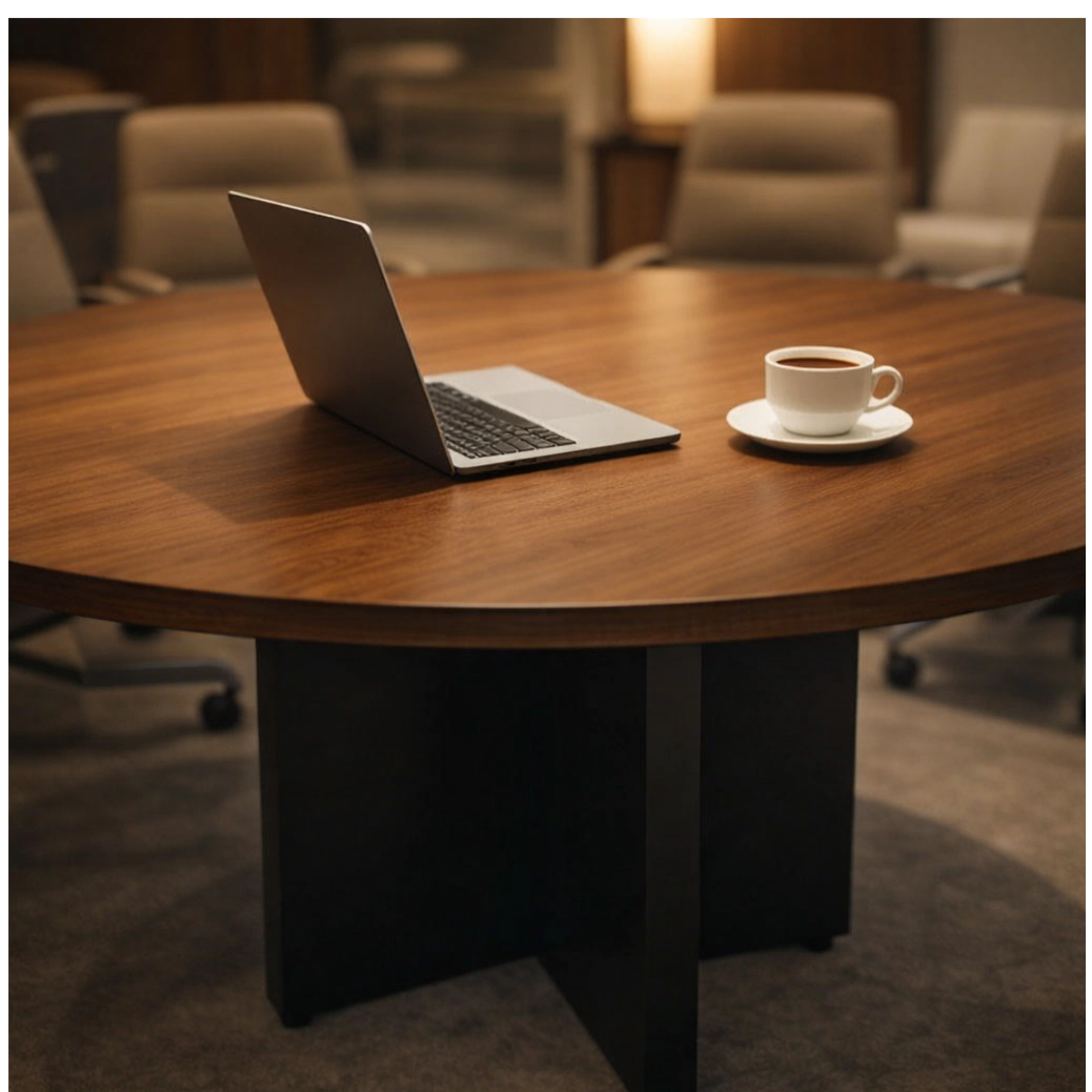 A Mesa de Reunião Redonda 1,10m na cor Sevilha/Preto é perfeita para criar um ambiente profissional, elegante e funcional em escritórios, salas de reunião ou ambientes corporativos. Seu formato redondo facilita a interação entre as pessoas, tornando reuniões, conversas e atendimentos muito mais confortáveis e produtivos.