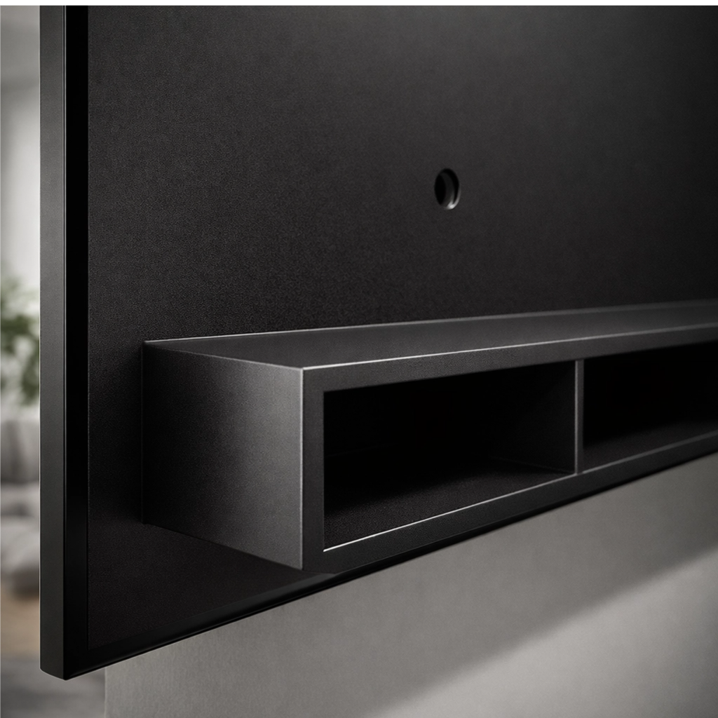 Na cor Preto, o painel apresenta um visual moderno e marcante, trazendo sofisticação e personalidade ao ambiente. Seu acabamento escuro cria um contraste elegante na decoração e combina perfeitamente com diferentes estilos de móveis e ambientes.