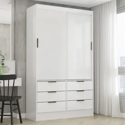 O acabamento moderno e os puxadores resistentes deixam o ambiente mais elegante e combinam com diversos estilos de quarto. As dobradiças reforçadas garantem maior durabilidade e praticidade no uso diário.