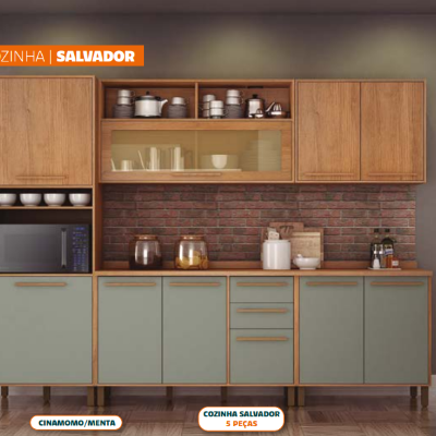 Armário de Cozinha Petra 2,00m Alt. x 2,18m Larg. x 0,45m Prof. – Com Gavetas Telescópicas e Pés Reguláveis