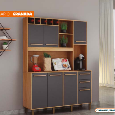 Armário de Cozinha Granada 2,00m Alt. x 1,47m Larg. x 0,45m Prof. – Gavetas Telescópicas e Pés Reguláveis