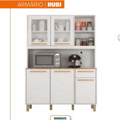 Armário de Cozinha Rubi 1,76m Alt. x 0,83m Larg. x 0,36m Prof. – Compacto com Pés Reguláveis