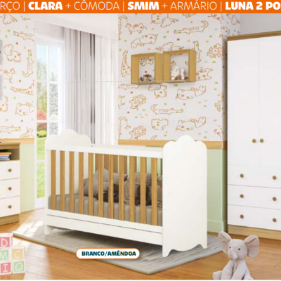 BERÇO | CLARA + CÔMODA | SMIM + ARMÁRIO | LUNA 2 PORTAS