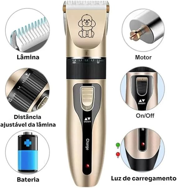 Aparador e Cortador de Cabelos – INOVA - S-262Uma máquina de cortar cabelo é ideal para as pessoas que gostam de praticidade e fazer o seu corte de forma rápida e segura. É mais do que um simples aparelho estético, para uso doméstico e profissional.Lindo acabamento na cor ouro, com display indicador de carga da bateria e ajuste preciso da lâmina em 5 posições de altura entre 0,8 e 2,0 mm.Aparador de cabelos profissional, sem fio, equipado com bateria de lítio de alta performance, tempo de operação com carga completa de 1,5 horas, recarregável USB.Equipado com lâmina de cerâmica que desliza suavemente em sua pele. Também é perfeitamente usado para qualquer comprimento com seu pente limite. Tem 4 pentes de proteção (3mm / 6mm / 9mm / 12mm), escova de limpeza e lubrificante.Se você gosta de deixar seus cabelos aparados de maneira fácil, aproveita agora, essa máquina é a escolha certa para você que deseja cuidar da sua aparência, o que é excelente para sua autoestima e para que você tenha um autocuidado no dia-a-dia.CARACTERÍSTICAS:Máquina Profissional, sistema de corte avançado;Modelo aerodinâmico e design ergonômico;Acabamento espelhado.Usado para qualquer comprimento com seu pente limite;Design mudo / ruído menor do que produtos similares;Usado sem fio, conveniente para operar;Display indicadora carga bateria.Recomendações:Um benefício muito pontual do cortador é que ele não te deixa na mão. Antes de utilizar pela primeira vez, coloque o óleo no conjunto de corte e verifique o tempo de carga inicial (Ver manual).DESCRIÇÃO:1. Cabo para carregamento USB: 110V/240V;2. Tensão do produto: 5 V DC USB;3. Cor: Ouro. 0034