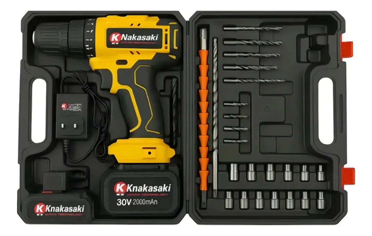 Parafusadeira/Furadeira Nakasaki 30V com Maleta + 24 Acessórios | Bivolt